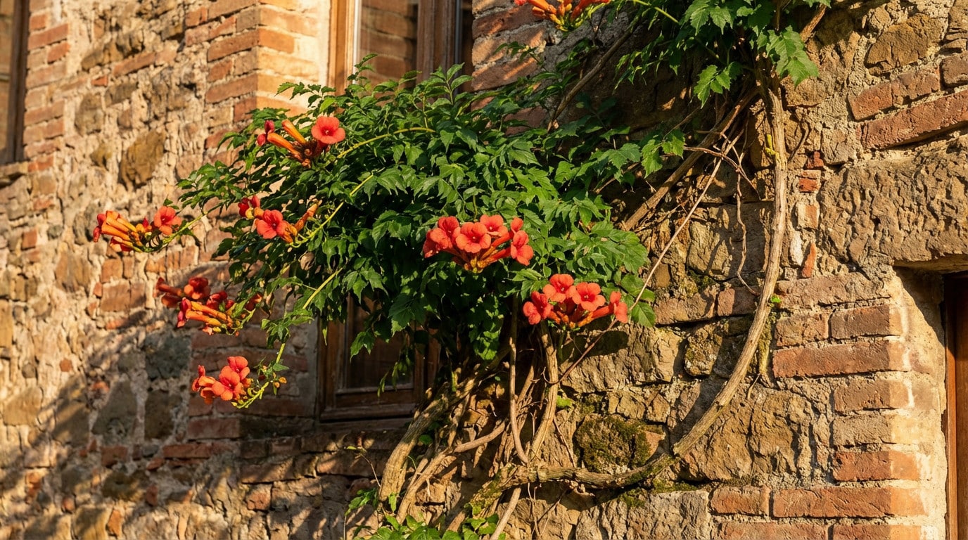 La bignone ne se contente pas de grimper, elle s’ancre physiquement dans la structure même de vos murs, transformant un simple support en une proie végétale.